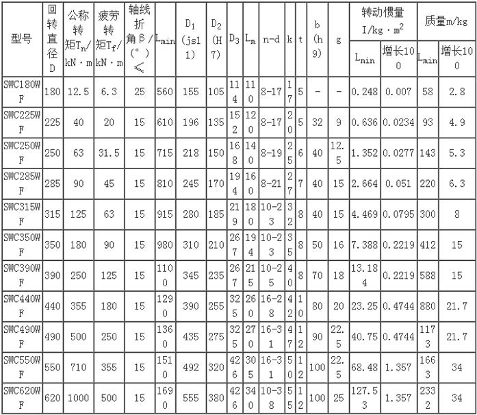 WF型無伸縮法蘭式萬向聯軸器基本參數和主要尺寸(JB/T5513-91)/mm